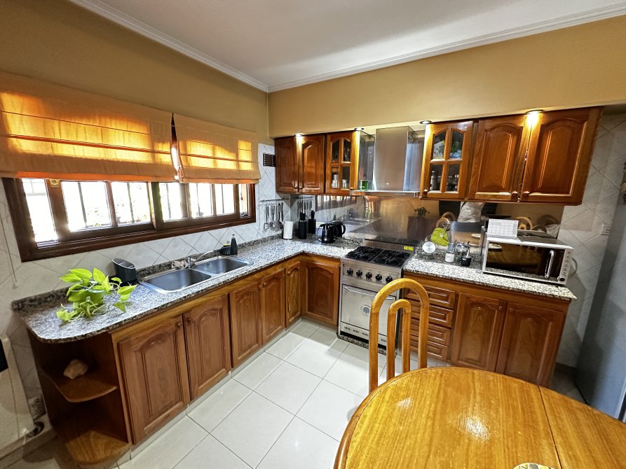 Planta Baja: Living Comedor muy luminoso con pisos tarugados de Viraró * Hermosa cocina comedor con muebles de bajo mesada y alacena, artefacto de cocina y spar en acero inoxidable y pisos de porcelanato * Baño completo con ducha y placard * Patio de 5,73 x 4,10 * Lavadero independiente * Parrilla a gas natural * Cochera con reja automatizada y toldo rebatible para la cobertura del vehículo.